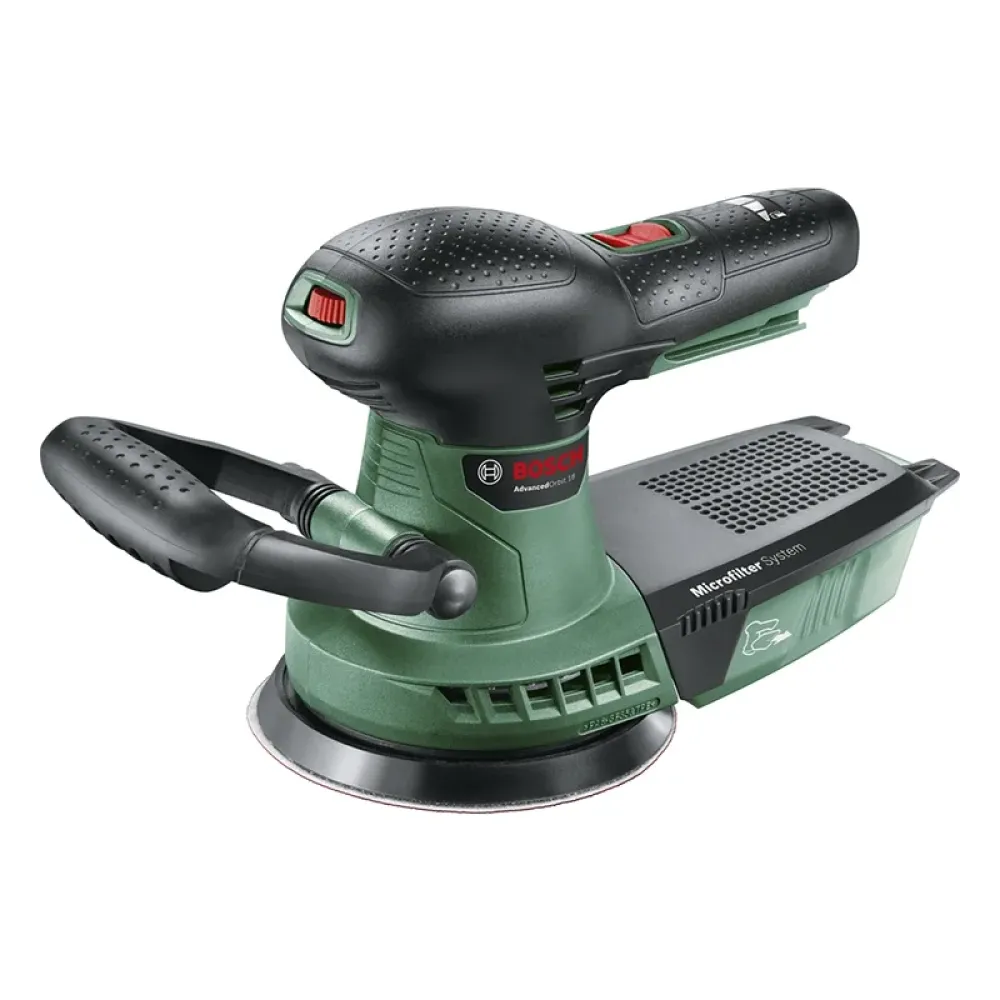 Эксцентриковая шлифовальная машина Bosch AdvancedOrbit 18 выполнена с контейнером для сбора пыли. Дополнительно вы можете установить специальный шланг или пылесос, который будет всасывать частички обработанного материала. Это повышает обзорность и позволяет держать рабочее пространство в чистоте.