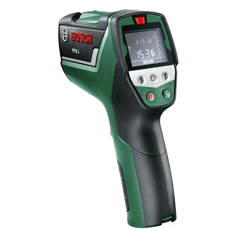 Пирометр Bosch PTD 1 позволяет определить места потери тепла и образования плесени в жилых домах и общественных производственных зданиях. С его помощью производится замер температуры поверхности объекта, а также влажности воздуха.