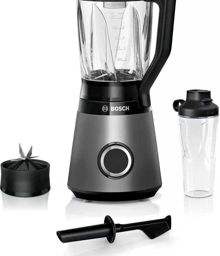 Блендер Bosch MMB6174S оснащен мощным мотором, который позволяет готовить однородные смузи, коктейли или соусы. Очистка теперь стала еще проще благодаря возможности мыть элементы прибора в посудомоечной машине. В состав изделия входит устойчивый к ударам высококачественный кувшин из тритана. Так же тритан не содержит BPA, BPS или других бисфенолов.