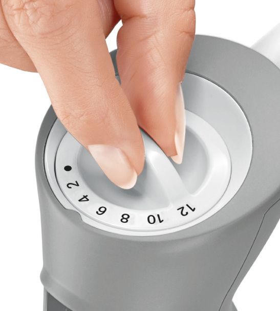 Прибор оснащен 12 скоростями, благодаря чему пользователь может выбирать интенсивность, с которой будет работать блендер. Наличие импульсного турбо-режима позволяет перемолоть продукты в однородную массу за короткое время. Управление осуществляется посредством нажатия кнопок или поворота переключателя. Эргономичная ручка прибора имеет мягкое покрытие Soft-touch. Это значит, что она устойчива к отслаиванию, попаданию влаги и механическим повреждениям, а также не скользит в руках. Мощность 600 Вт делает технику идеально подходящей для семьи из одного-трех человек. Кроме того, благодаря низкому уровню шума и вибраций не возникает дискомфорта при использовании.