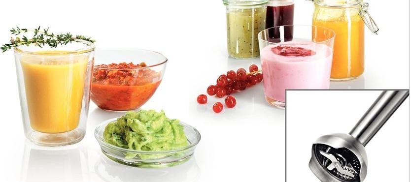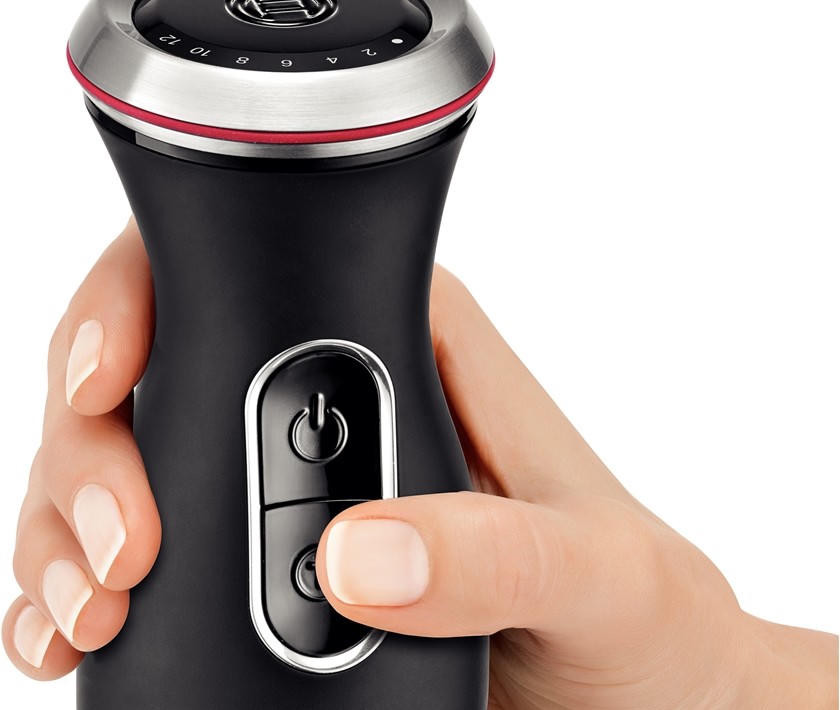 Большие кнопки обеспечивают дополнительный комфорт использования. Эргономичная рукоятка с антискользящим покрытием адаптирована под кисть руки. Корпус и ножка модели выполнены из нержавеющей стали, что повышает надежность эксплуатации. 12 скоростных режимов и мощный мотор обеспечивают качественные и быстрые результаты. Низкий уровень шума и вибрации не создают дискомфорт во время работы блендера.