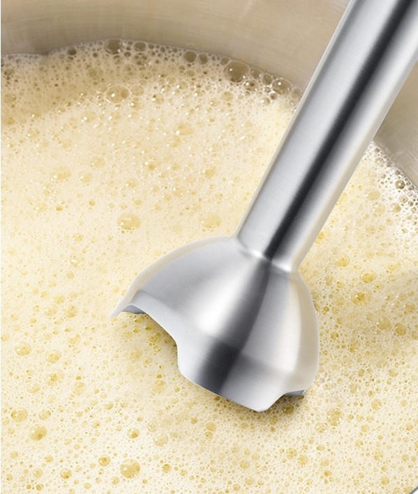 Разнообразие насадок расширяет возможности модели. Большие кнопки обеспечивают удобное управление и позволяют быстро менять насадки. Эргономичная рукоятка комфортно удерживается в руке. Специальное покрытие предотвращает скольжение. Ножка блендера и принадлежности можно мыть в посудомоечной машине.