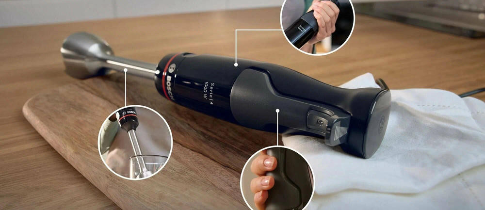 Блендер Bosch MSM4B670 - это элегантный и функциональный прибор, который не только облегчит процесс приготовления пищи, но и станет стильным акцентом на вашей кухне. Сочетание черного цвета и металлических элементов придает ему современный и элегантный вид. Корпус изготовлен из высококачественного пластика, который обеспечивает долговечность и надежность использования. Погружная часть, выполненная из металла, обеспечивает отличную производительность и долгий срок службы. Этот блендер оснащен четырех лезвийным ножом, который гарантирует равномерное и быстрое измельчение продуктов. Количество скоростей 12, что позволяет выбрать оптимальный режим для каждого вида продуктов. Бесступенчатая регулировка скорости и наличие импульсного/турбо режима делают использование блендера еще более удобным и эффективным.