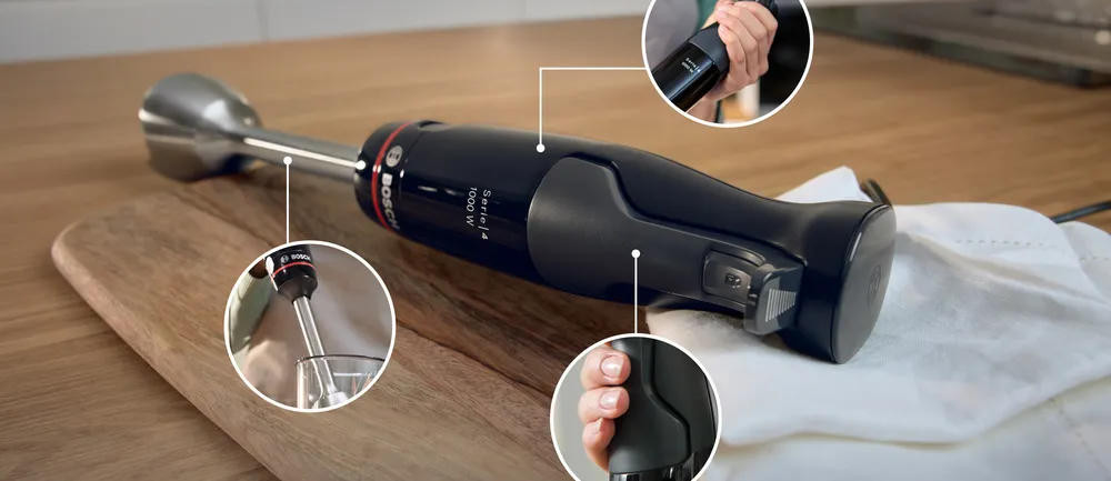 Блендер Bosch MSM4B6V2 из серии MaxoMixx - это высококачественное устройство, созданное для удобства и комфорта при приготовлении различных блюд. Стильный дизайн, выполненный в черном цвете, идеально впишется в любой интерьер кухни. Корпус изготовлен из прочного пластика, а погружная часть - из нержавеющей стали, что обеспечивает долговечность и надежность использования. Блендер оснащен измельчителем, чаша которого выполнена из пластика. Нож блендера с 4 лезвиями QuattroBlade гарантирует равномерное и быстрое измельчение продуктов. Управление блендером происходит с помощью кнопок, что делает его использование максимально удобным и простым.
