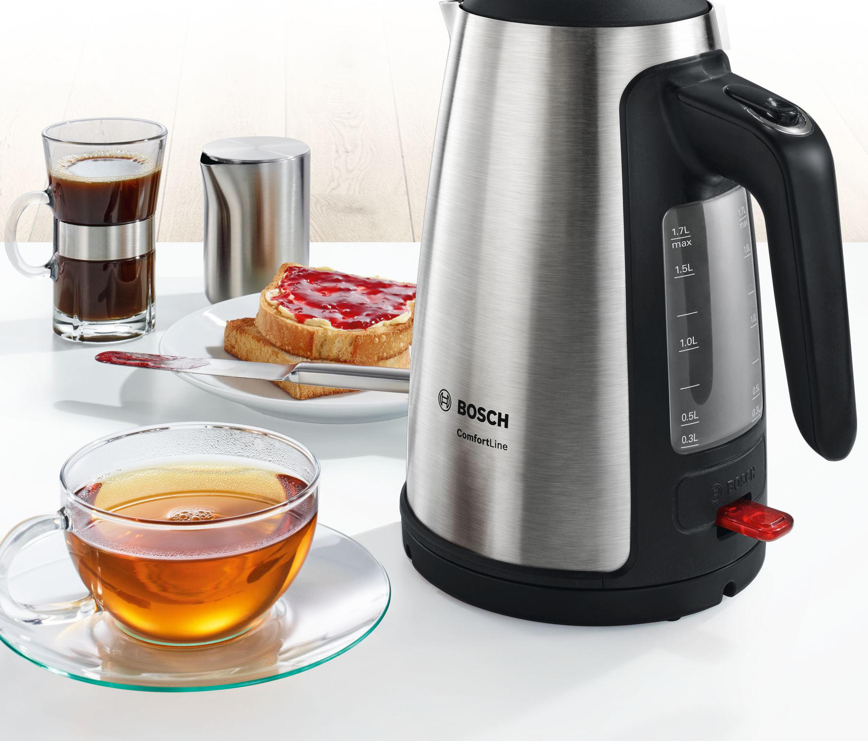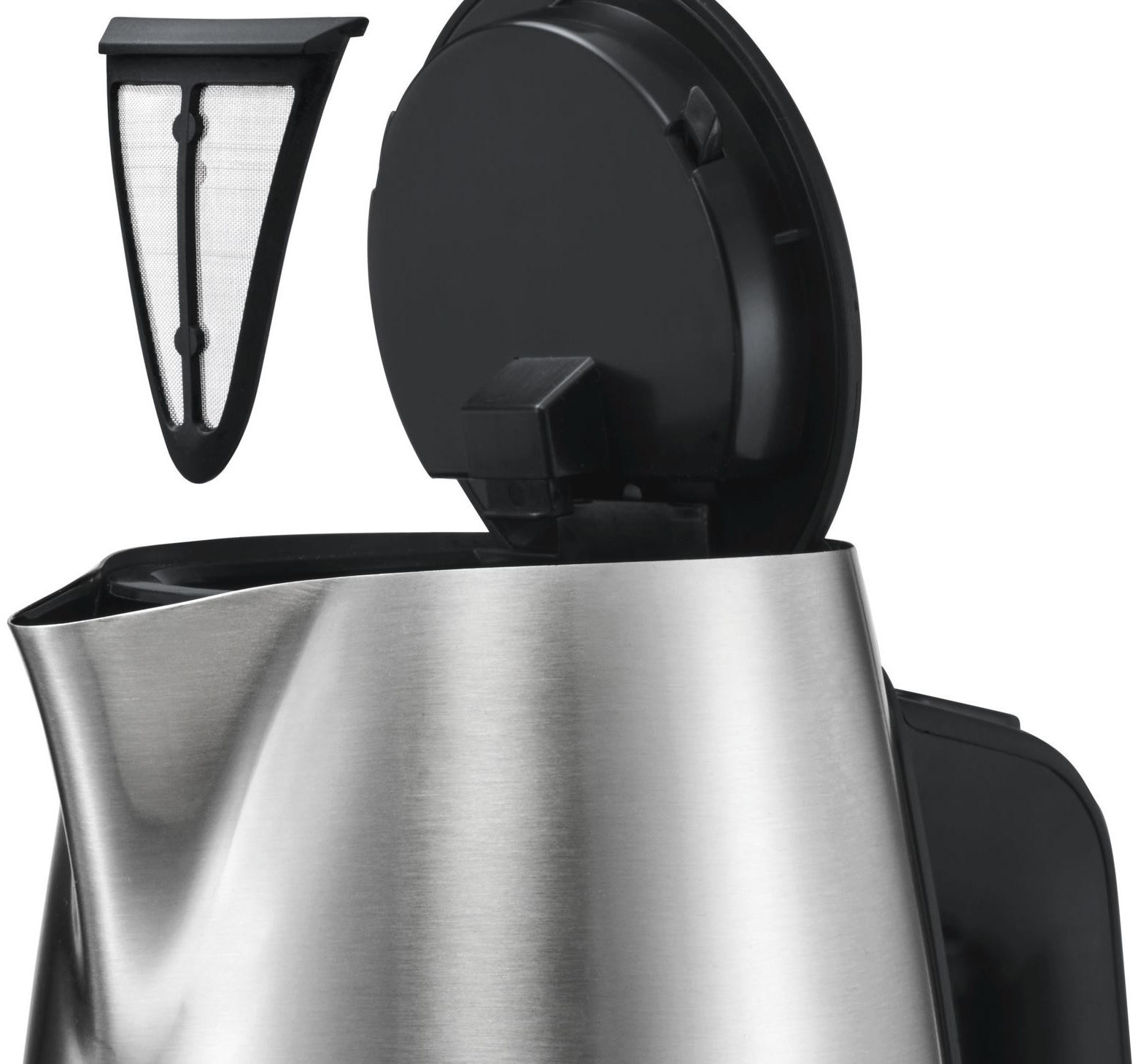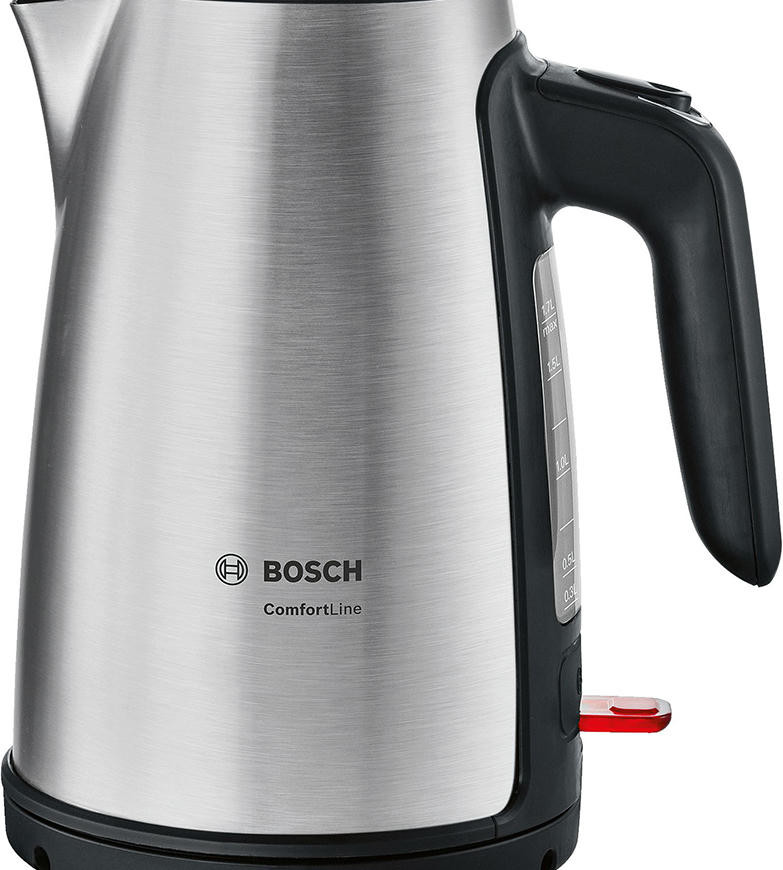 Чайник Bosch TWK 6A813 c фильтром от накипи, который очищает воду от загрязнений. Расположен в носике и легко изымается для очистки. Трехуровневая защита от перегрева обеспечивает безопасность при эксплуатации модели
