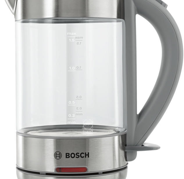 Чайник Bosch TWK 7090B выполнен из стекла с элементами из нержавеющий стали сочетает в себе стиль и функциональность. Цоколь с поворотом на 360° с центральным контактом позволит взять чайник с любой стороны.