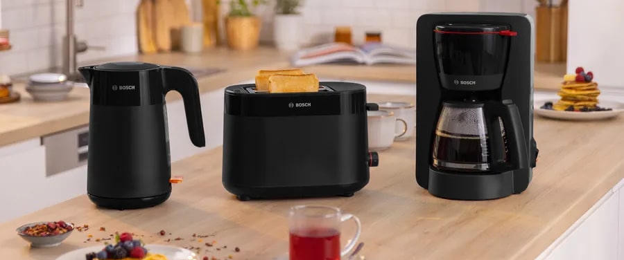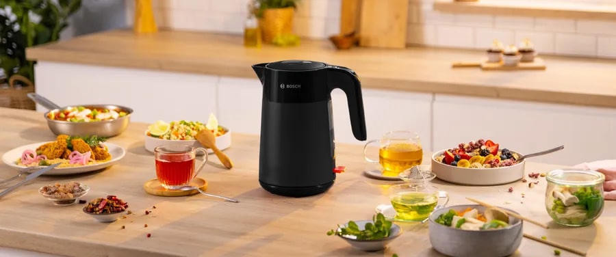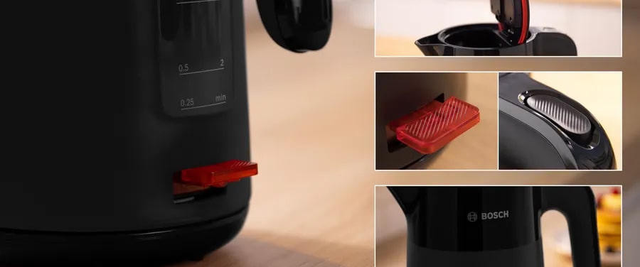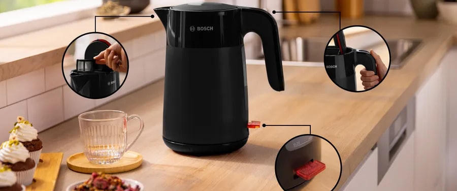 Чайник Bosch TWK2M163 является надежным и функциональным помощником на вашей кухне. Этот электрочайник выполнен в строгом черном цвете, что придает ему современный и стильный вид, способный вписаться в любой интерьер. Корпус изготовлен из качественного пластика, что обеспечивает его долговечность и простоту в уходе. Особенностью данной модели является ее объем в 1.7 литра, что позволяет приготовить большое количество горячего напитка за один раз. Также чайник оснащен закрытой спиралью, что обеспечивает быстрый и равномерный нагрев воды. Чайник оснащен индикатором уровня воды, что позволяет контролировать количество воды внутри устройства и избегать ее перелива. Также есть индикация включения, которая сигнализирует о работе устройства.
