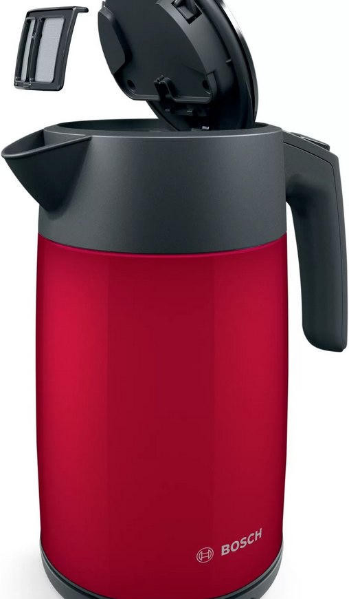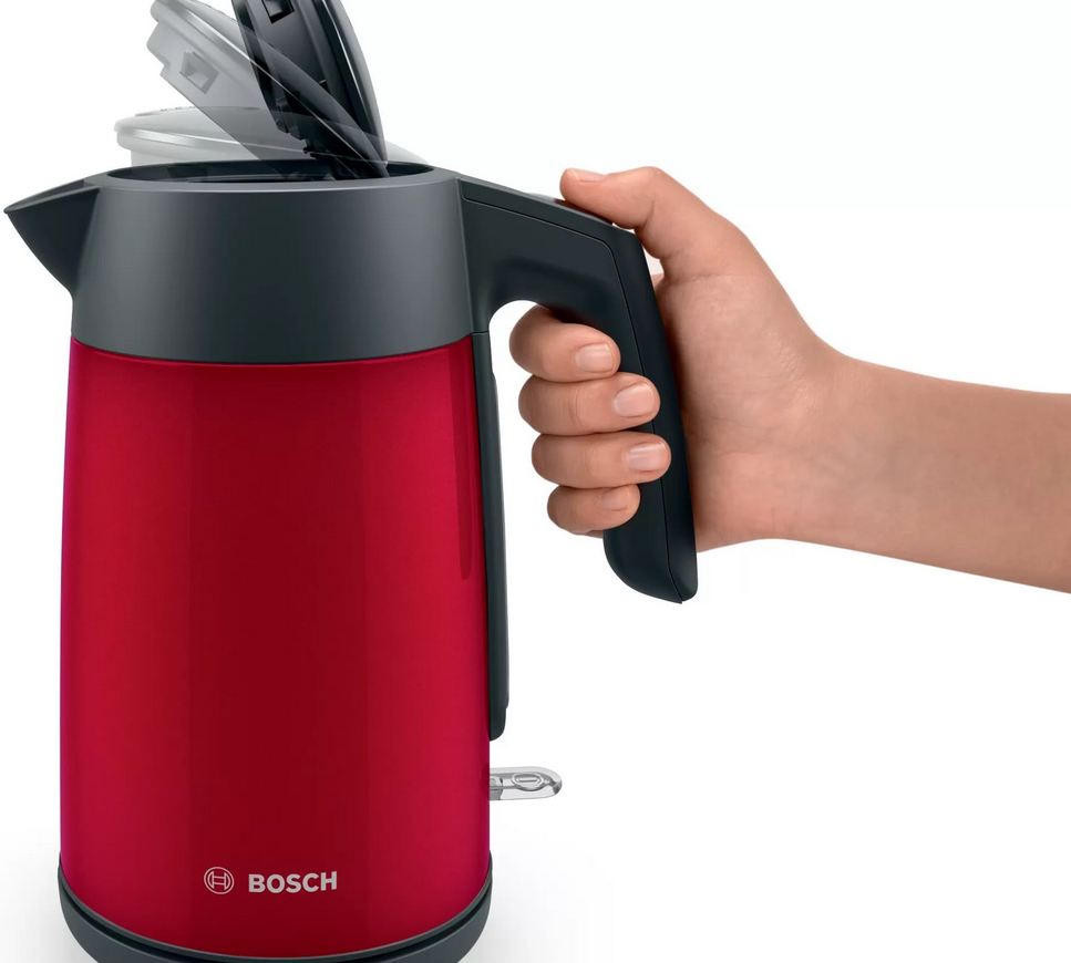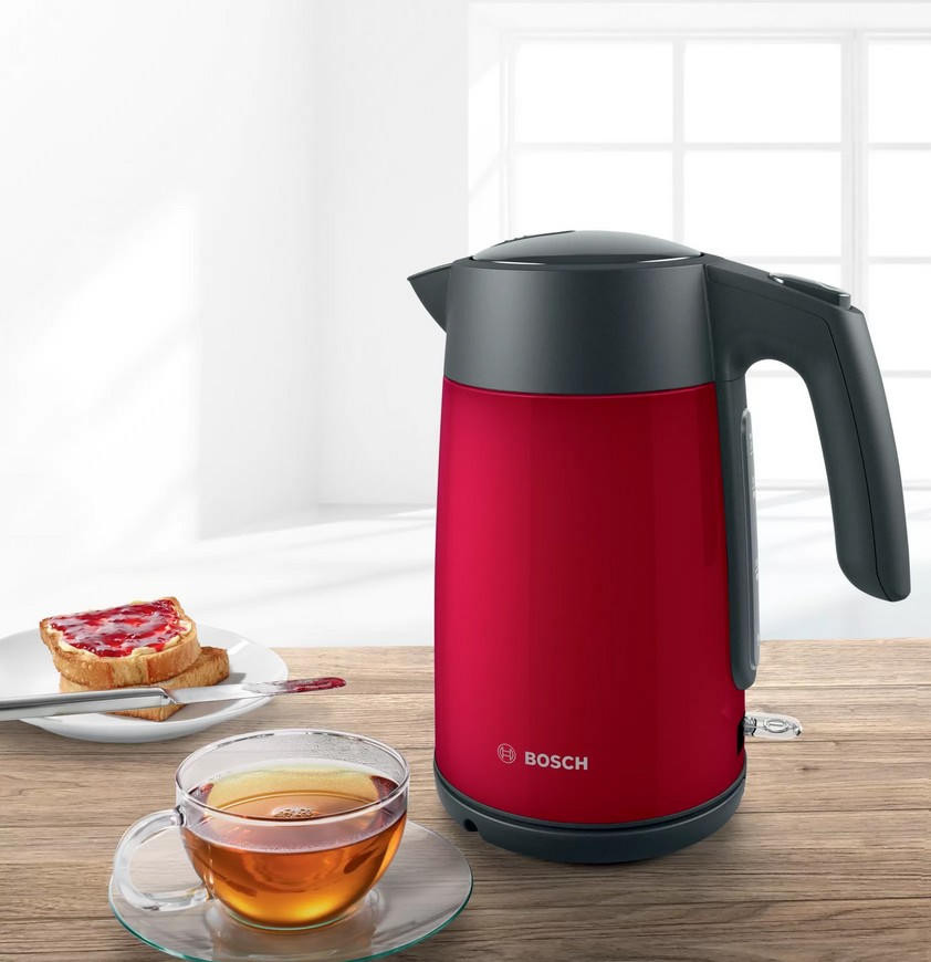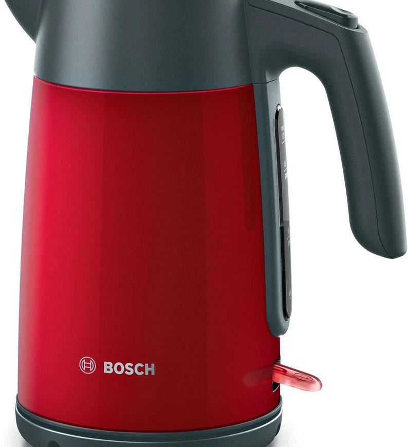 Когда каждая минута утра на счету, электрический чайник Bosch TWK7L464 становится незаменимым помощником, способным вскипятить воду для нескольких чашек за считанные секунды. Это устройство с ярким алым корпусом из нержавеющей стали, который не только привлекает внимание, но и отличается особой прочностью. Его объем в 1.7 литра идеально подходит для семьи, позволяя за один раз приготовить основу для чая, кофе или быстрых блюд. Благодаря закрытому нагревательному элементу и высокой мощности процесс кипячения проходит максимально эффективно и безопасно.