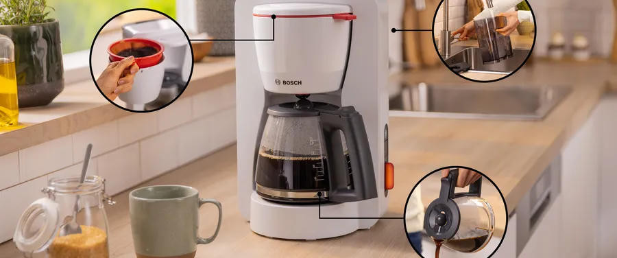 Одним из ключевых преимуществ кофеварки Bosch TKA3M131 является функция Aroma+Button, которая позволяет настроить интенсивность аромата кофе по вашему вкусу. Программа EasyDescale3 обеспечивает простое и эффективное удаление накипи, что продлевает срок службы устройства и обеспечивает более вкусный кофе. Кофеварка также оснащена функцией автоматического отключения через 20, 40 или 60 минут, что помогает экономить энергию и предотвращает перегрев.