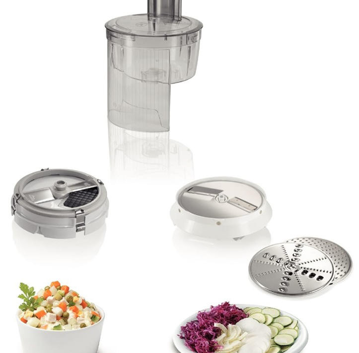 Кухонный комбайн Bosch MUM 54251 — это современный прибор, выполненный в серебристо-белом цвете, с большим количеством функций и насадок. Прибор может работать в качестве блендера, соковыжималки, мясорубки и миксера. Корпус выполнен из высокопрочного пластика, чаша ёмкостью 3,9 л — из стали. В комплект входит 5 насадок, в том числе универсальная резка с тремя дисками и насадка для нарезки кубиками. Отдельно стоит отметить набор для выпечки — крюк для теста и два венчика, для взбивания и смешивания. Также в комплект входит ручная соковыжималка для цитрусовых.