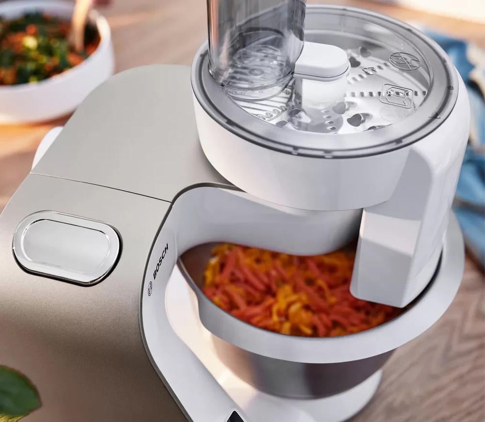 Кухонный комбайн BOSH MUM5XW10 имеет особенности в конструкции которые облегчат процесс приготовления. Если вы точно знаете сколько должно готовится тесто или соус, в этом поможет таймер. Нужно выставить требуемое время, и об его завершении оповестит сигнал.