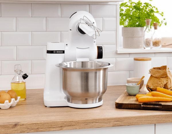 Кухонный комбайн Bosch MUM S2EW00 — мощная машина для приготовления салатов и выпечки. Современный привлекательный дизайн и компактность — MUM Serie | 2 идеально впишется даже в небольшую кухню. Чаша из нержавеющей стали или пластмассы объемом 3,8 л позволяет замесить до 1.7 кг дрожжевого и до 2.4 кг бисквитного теста. 3D планетарный принцип вращения обеспечит качественное смешивание ингредиентов — насадки вращаются сразу в трех направлениях.