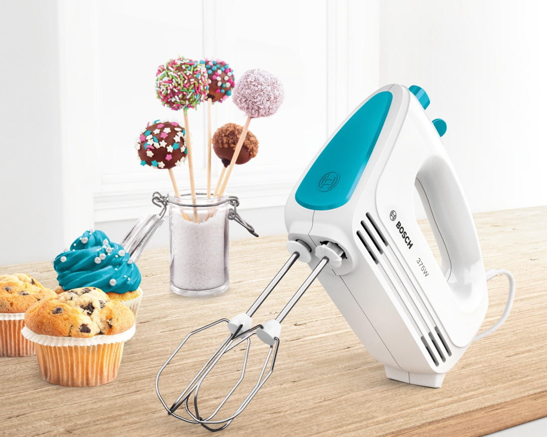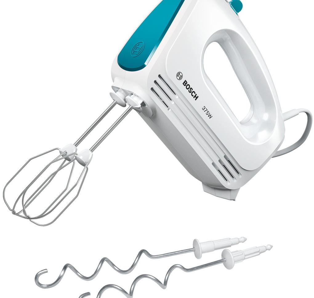 Миксер Bosch MFQ 2210D изготовлен из безопасного пластика, все детали устройства, контактирующие с продуктами питания, не содержат веществ опасных для здоровья. В комплекте прилагаются два типа насадок: венчики для взбивания и крюки для теста — отсоединяются нажатием специальной кнопки. Мощности прибора достаточно для взбивания крема, замешивания густого теста.