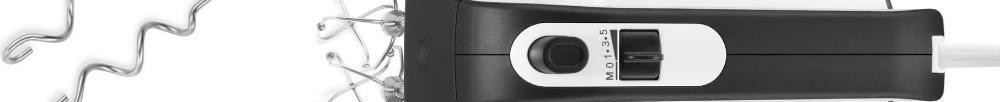 В арсенале модели есть 5 скоростей работы, от медленной до максимально быстрой, что позволяет начинать работу плавно и без брызг, а затем достигать высокой скорости вращения. Кроме того предусмотрен импульсный режим, когда при нажатии кнопки миксер начинает работать сразу на наибольшей мощности. Это поможет избавиться от остатков жидкости на венчиках или быстро вмешать новые ингредиенты в уже готовую массу.