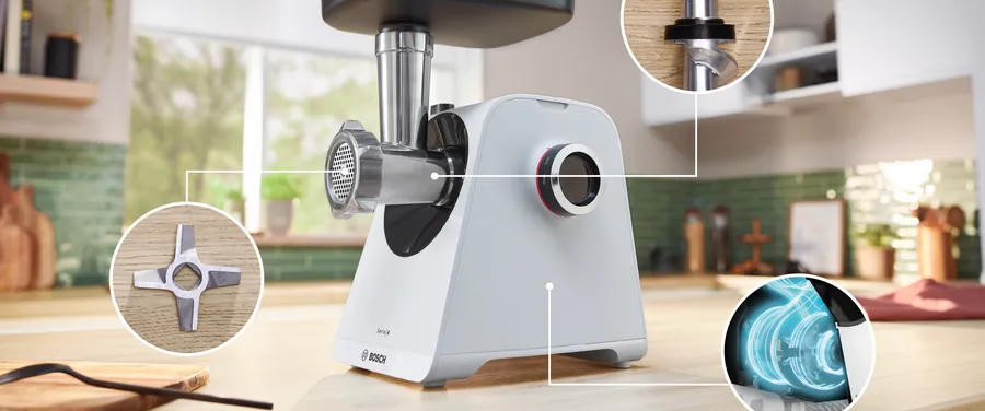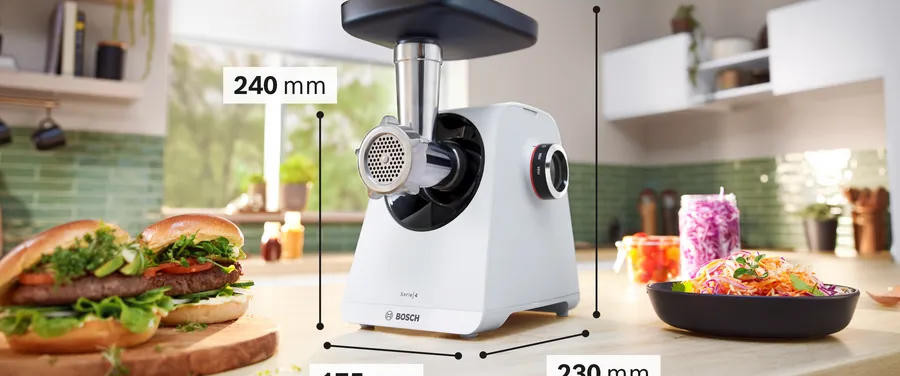 Мясорубка Bosch MFWS420W - это современное и функциональное устройство, которое станет незаменимым помощником на кухне. Благодаря своему элегантному дизайну и белому цвету, она легко впишется в любой интерьер. Корпус изготовлен из высококачественного пластика, что обеспечивает долговечность и надежность при длительном использовании. Устройство оснащено двумя скоростями, что позволяет выбирать оптимальный режим в зависимости от видов работ. В комплекте с мясорубкой идет 6 насадок, что делает ее универсальным инструментом для приготовления разнообразных блюд. Нож с двустронней заточкой гарантирует идеальное рубление мяса, а формовочные диски для фарша позволяют получить продукт нужной консистенции.