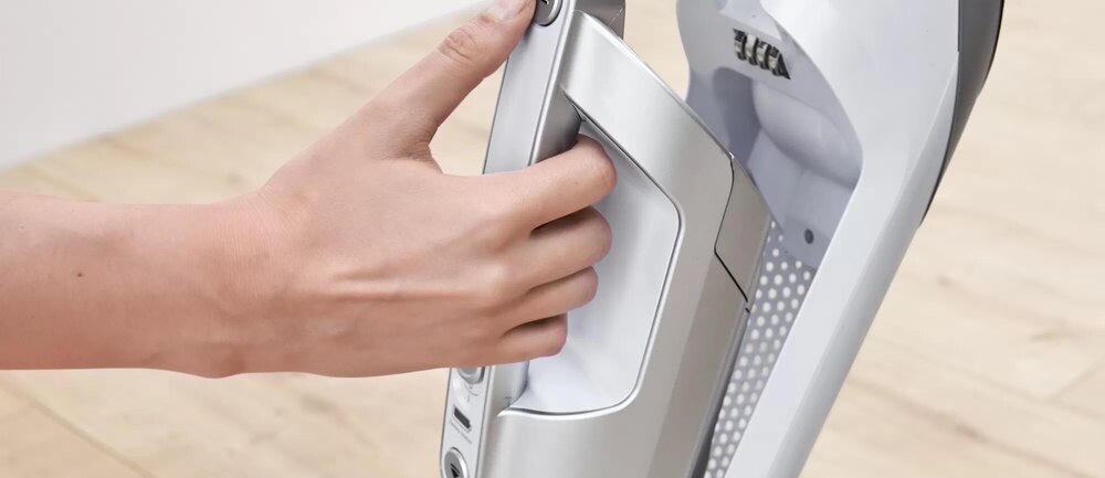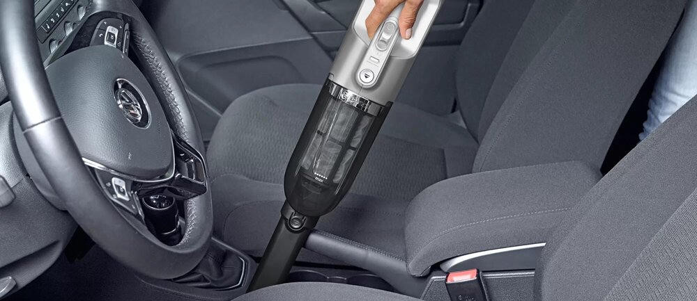Мощность всасывания регулируется с помощью кнопки на ручке. Благодаря наличию герметичного контейнера на 0,4 л допускается сбор пролившихся жидкостей. Это очень сильно облегчает процесс, когда надо что-то быстро убрать и не допустить полное впитывание и высыхание. Комфортной эксплуатации способствует наличие яркого индикатора уровня заряда и регулятора мощности, расположенного на корпусе. Работа прибора осуществляется на уровне шума равного 82 дБ. За счет этого подразумевается неограниченный радиус действия техники, возможности удобной чистки салона автомобиля, удаления пыли в труднодоступных местах и на высоких шкафах.