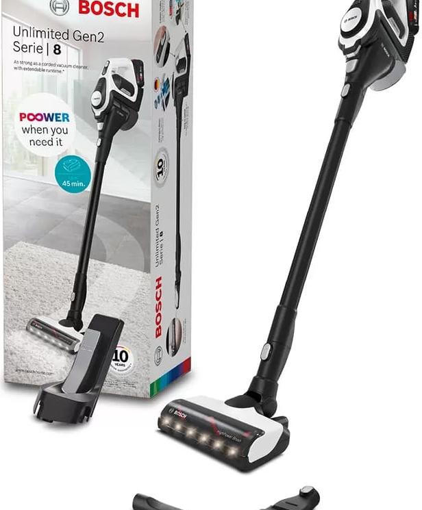 Пылесос Bosch BBS8213W работает без проводов на основе аккумулятора, при этом характеризуется высокой производительностью с поглощением до 99.9% пыли. Турбощетка AllFloor HighPower со светодиодной подсветкой обеспечивает тщательную уборку на различных покрытиях. Сбор пыли осуществляется в контейнер емкостью 0.4 л. На рукоятке расположены кнопки регулировки уровня мощности. Аккумулятор гарантирует в пределах 45 минут автономной работы и отличается быстрым процессом восстановления заряда.