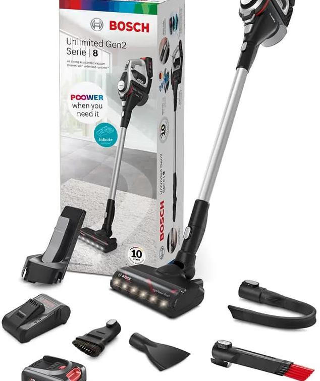 Пылесос Bosch BCS8224WA благодаря беспроводной работе, вертикальной конструкции и цифровому мотору высокой мощности способен обеспечить качественные результаты сухой уборки. Фирменная турбированная щетка HighPower со встроенной LED-подсветкой ярко освещает зону уборки. Сбор мусора осуществляется в контейнер, который легко снимается и очищается при необходимости. Два сменных аккумулятора исключают ограничение по времени при выполнении уборки и отличаются быстрым восстановлением заряда. Время автономной работы одного аккумулятора составляет около 65 минут.