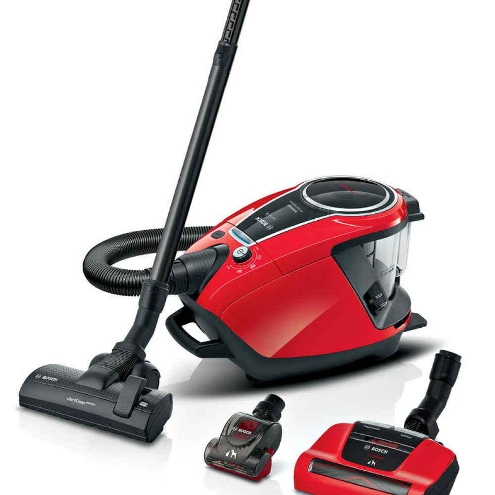 Пылесос Bosch BGS7PET — это удобная модель в эксплуатации, выполненная в черно-красном цвете. Она не займет у вас много места в помещении, поскольку ее габариты небольшие: высота — 31 см, ширина — 32 см, глубина — 47 см. Не смотря на свои относительно маленькие размеры, техника обладает высокой мощностью в 800 Вт, что гарантирует чистоту и высокое качество уборки. Мощность всасывания регулируется с помощью поворотных переключателей на корпусе.