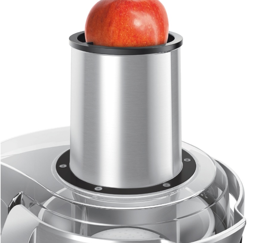 Большое загрузочное отверстие диаметром 84 мм позволяет загружать большинство фруктов и овощей без предварительной нарезки. Вместительный резервуар для сока объемом 1.5 литра и контейнер для мякоти на 3 литра делают модель удобной для приготовления напитков на всю семью. Керамический нож отличается повышенной износостойкостью и прост в обслуживании. Компактные габариты и отсек для сетевого шнура упрощают хранение прибора на кухне.