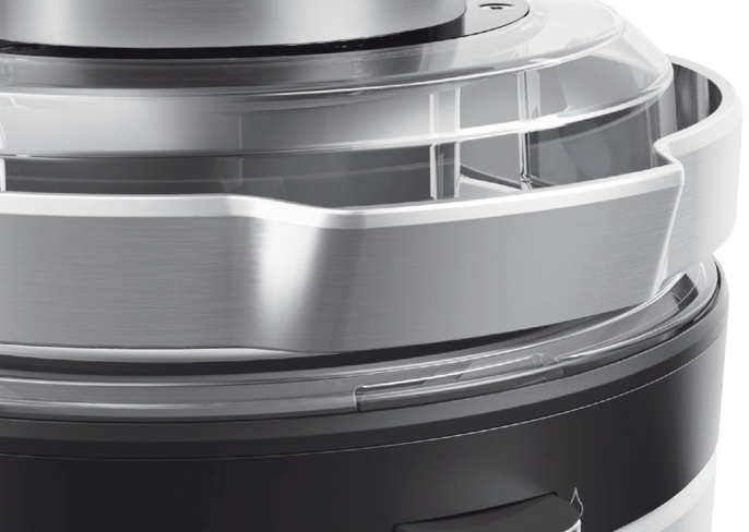 Безопасность использования обеспечивается несколькими системами. Функция SafetyStop блокирует запуск двигателя при неправильной сборке или незакрытой крышке. Прорезиненные ножки надежно фиксируют прибор на столешнице во время работы, предотвращая вибрацию и скольжение. Усиленный фиксатор крышки из литого алюминия гарантирует ее надежное крепление в процессе отжима.