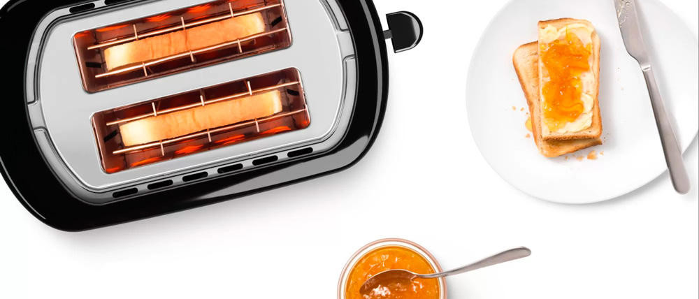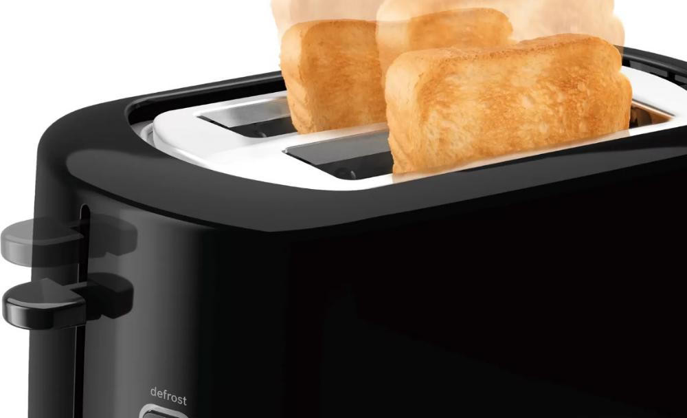 Прибор оснащен центрированием ломтиков хлеба для равномерного поджаривания и экстра-подъёмом маленьких кусочков. При застревании нагрев автоматически отключается. Электронный сенсор контролирует оптимальную температуру подрумянивания.