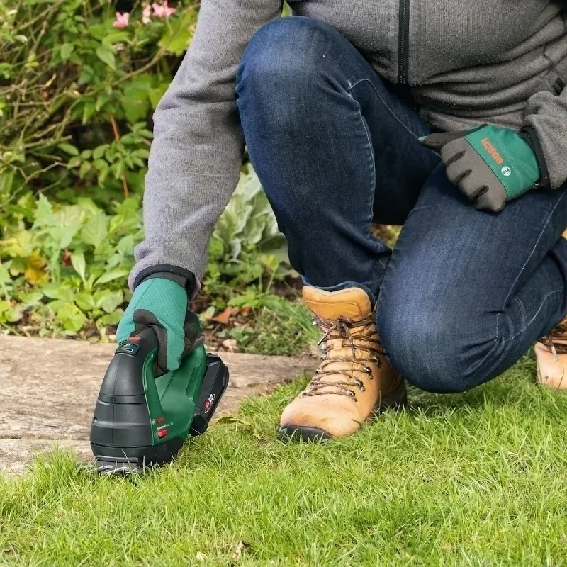 Аккумуляторные ножницы Bosch Advanced Shear 18V-10 обладают малым весом в 1 кг, поэтому их удобно переносить одной рукой. А для крепкого хвата на основной рукоятке предусмотрена вставка из нескользящего материала. Для максимальной остроты швейцарские прецизионные лезвия обработаны с помощью алмазного шлифования и лазерной заточки. Это обеспечивает простой рез ветвей и травы без прикладывания усилий с вашей стороны.