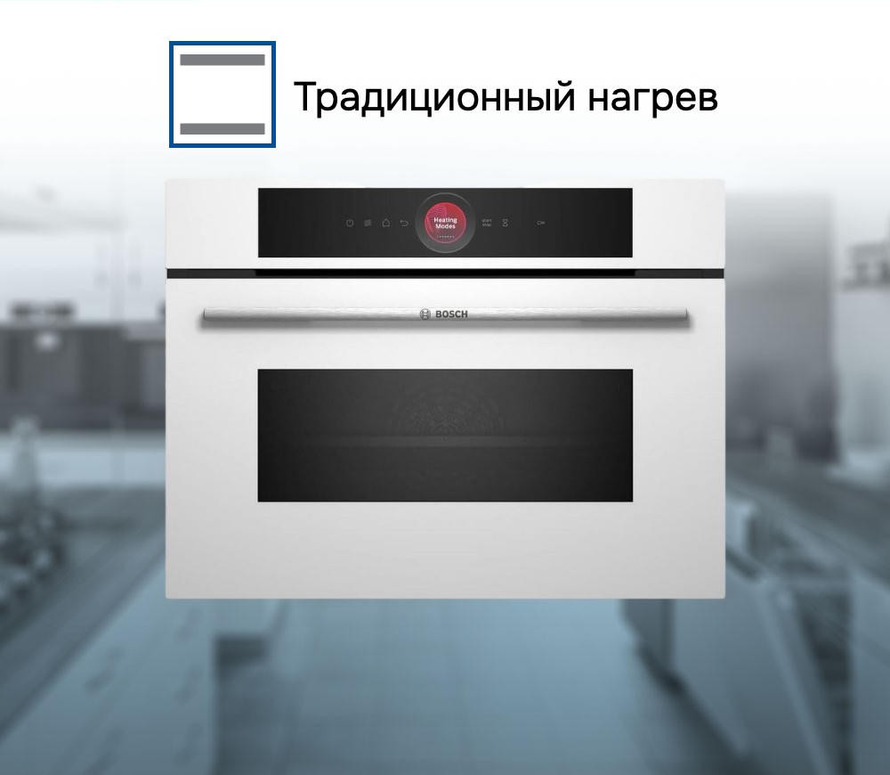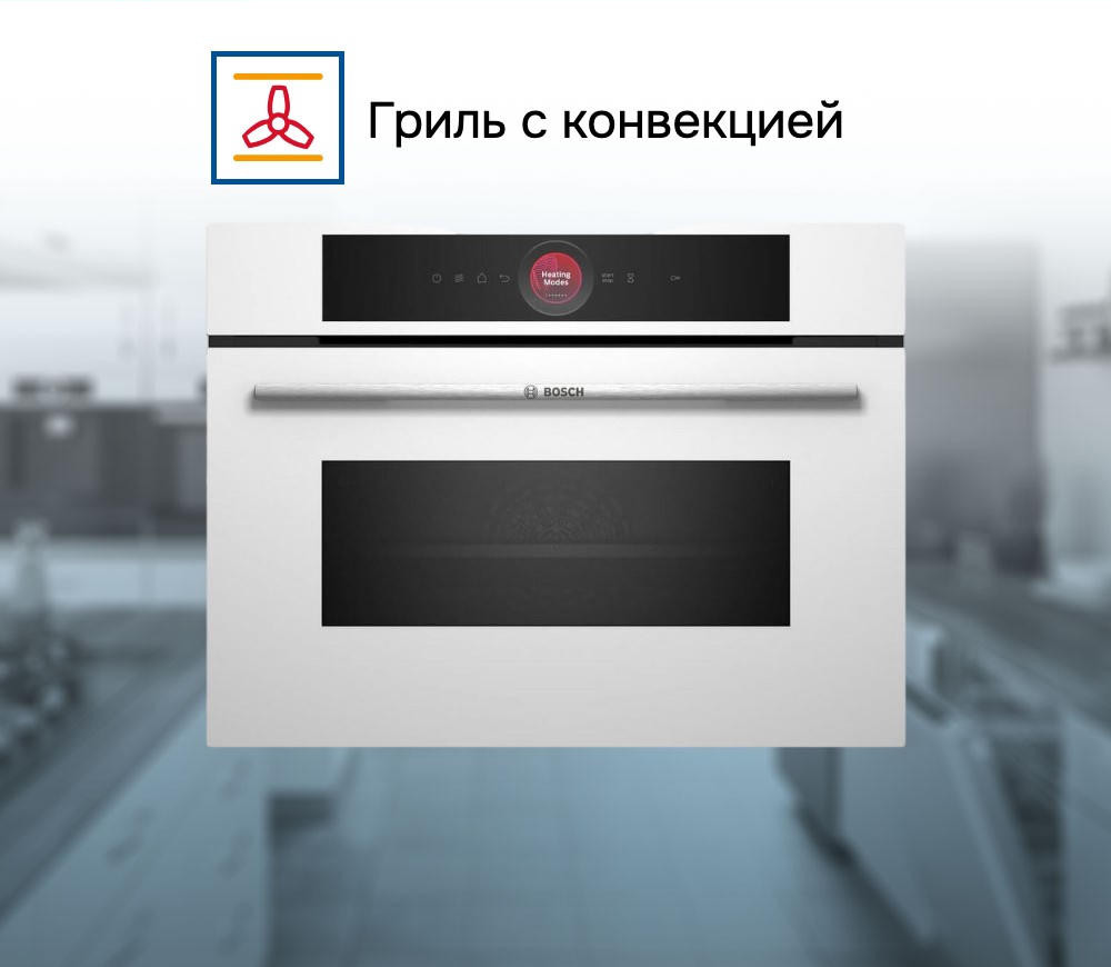 Духовой шкаф Bosch CMG7241W1 - это высококачественный прибор, который сочетает в себе элегантный дизайн и продуманные функции. Белый цвет корпуса идеально впишется в любой интерьер кухни. Благодаря объему в 45 литров, шкаф способен удовлетворить потребности даже большой семьи. Управление прибором осуществляется с помощью сенсорных элементов и 2.5-дюймового цветного TFT-дисплея, который обеспечивает простоту и удобство использования. Шкаф оборудован электронными часами и таймером, что позволяет контролировать процесс приготовления блюд и избегать пережаривания.