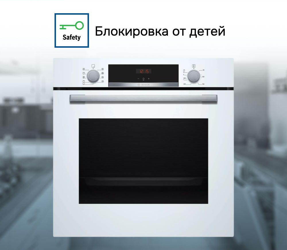 Духовой шкаф Bosch HBA534BW0 — это электрическая независимая модель. Ее внутренний объем составляет 71 литр, благодаря чему есть возможность запекать большие блюда. Она оформлена в белом цвете, благодаря чему отлично впишется в любой современный кухонный интерьер. Управление осуществляется посредством использования сенсорных кнопок, а также поворота переключателей. Благодаря многофункциональным часам Easy Clock можно с легкостью отслеживать время до окончания работы одной из программ.