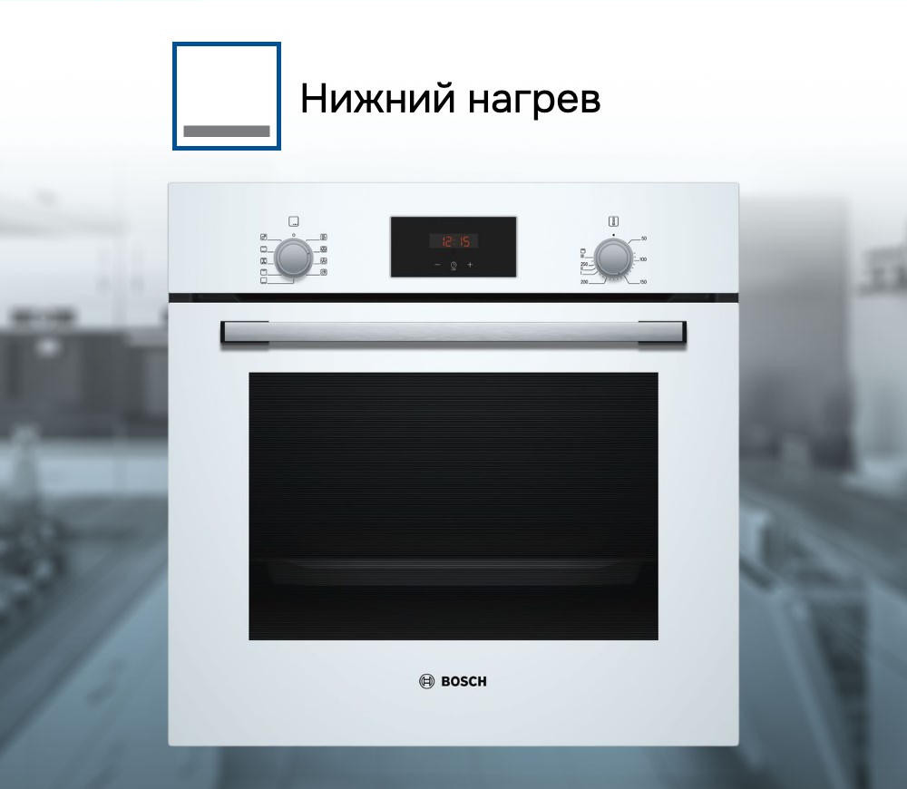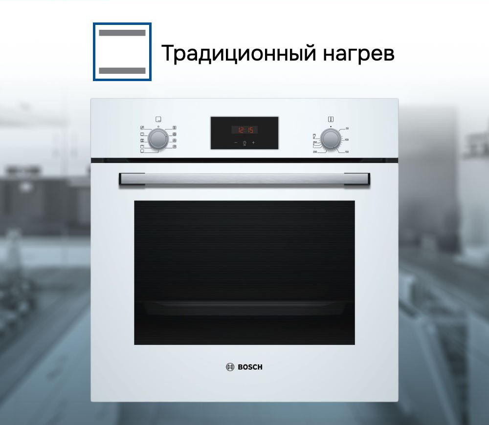 Духовой шкаф Bosch HBF134EV0R — это электрическая независимая модель из линейки Serie | 2. Ее внутренний объем составляет 66 литров, благодаря чему в ней можно запекать сразу несколько блюд, либо одно большое. Она выполнена в белом цветовом решении, благодаря чему хорошо вписывается в различные виды современного кухонного интерьера. Управление осуществляется с помощью сенсорных кнопок, а также утапливаемых и поворотных переключателей. LED-дисплей устойчив к высоким температурам, а также имеет качественное изображение под любым углом. Благодаря многофункциональным часам Easy Clock можно с легкостью отслеживать время до окончания работы одной из программ.
