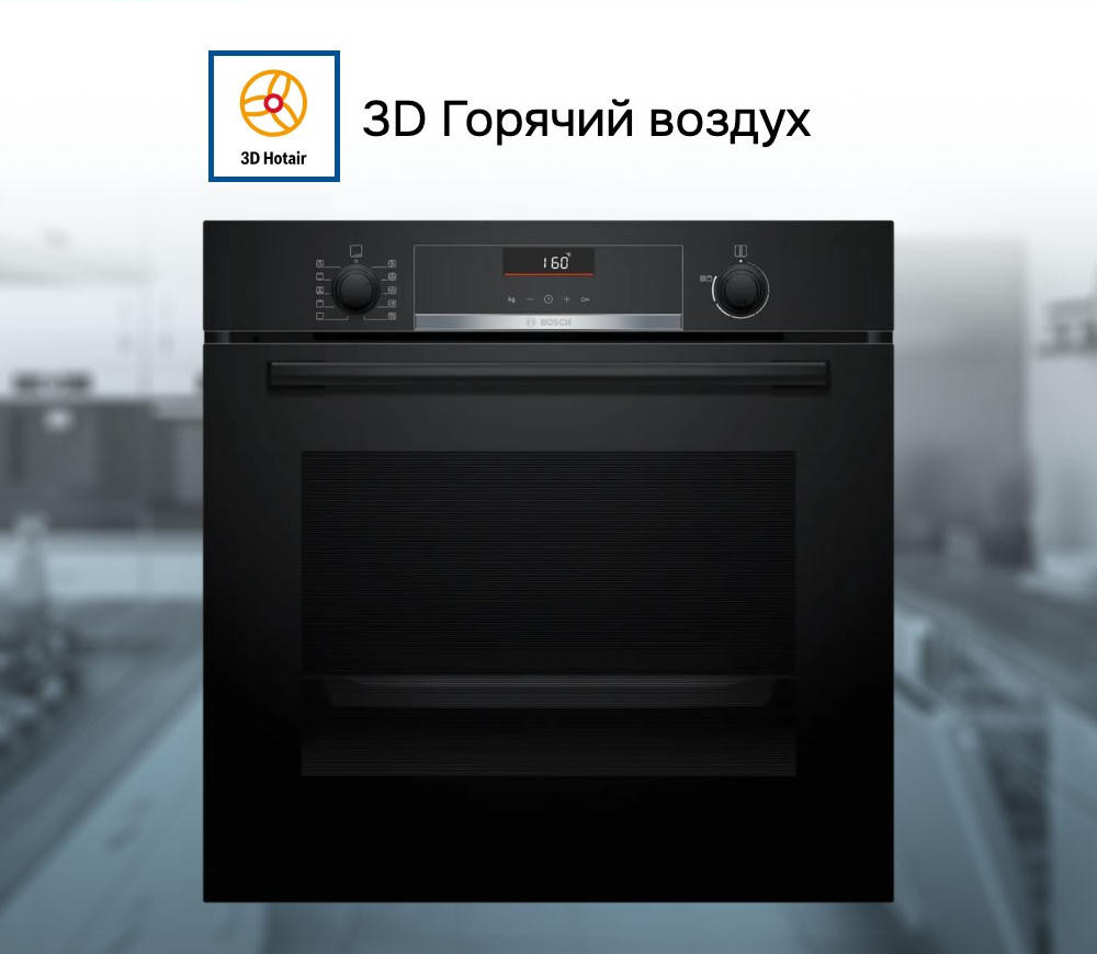 Духовой шкаф Bosch HBG536EB3 оснащен 7 режимами нагрева, включая 3D-горячий воздух и горячий воздух Gentle, верхний/нижний жар ECO, большой гриль, гриль с конвекцией, режим для пиццы и нижний жар. Диапазон температур прибора составляет от 50 до 275 градусов Цельсия. Особенностью данной модели является наличие автоматического приготовления AutoPilot с 10 автоматическими программами и функцией быстрого разогрева. Внутреннее освещение обеспечивает отличную видимость, а система очистки EcoClean с панелями на задней стенке значительно облегчает уход за прибором.