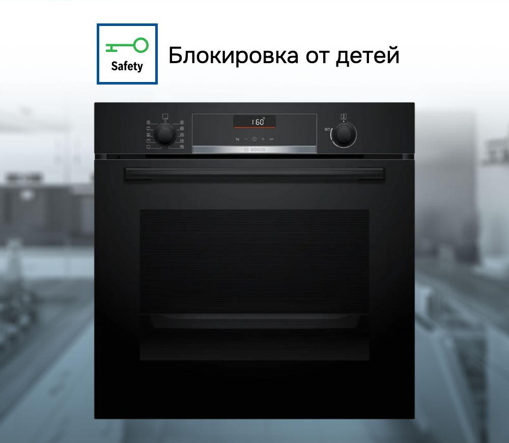 Шкаф оснащен амортизатором дверцы SoftOpen и телескопическими направляющими на одном уровне, что обеспечивает удобство использования. Блокировка от детей предотвращает случайное включение прибора. В комплект поставки входит комбинированная решетка, эмалированный противень и универсальный противень.