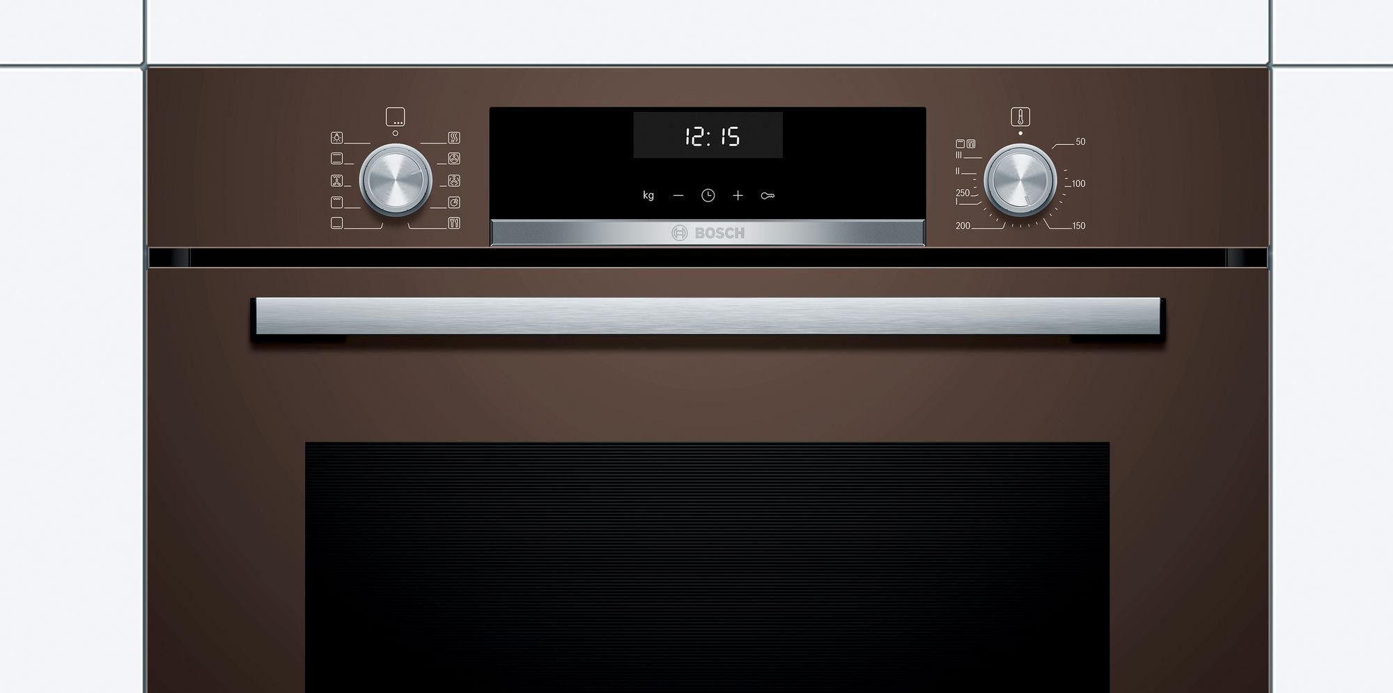 Bosch HBG537YM0R — это электрический духовой шкаф коричневого цвета объёмом 71 л. Камеру внутри освещает галогенная лампочка мощностью 25 Вт. Есть дисплей с индикацией температуры. Уровней установки противней — пять, в том числе два — с телескопическими направляющими. Предусмотрена блокировка от детей с возможностью настройки. В комплекте идут два противня (универсальный и эмалированный) и комбинированная решётка.