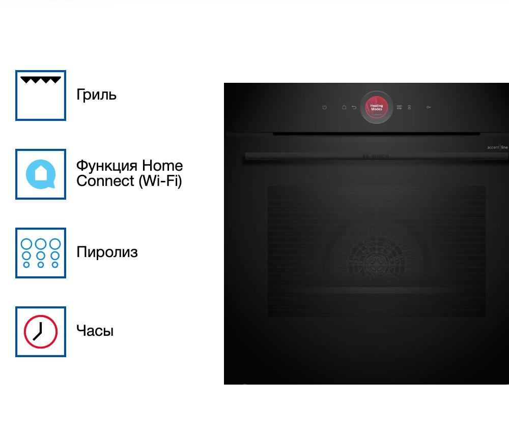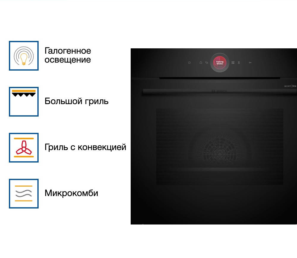 Духовой шкаф Bosch HBG9742B1S из премиальной линейки Serie | 8 — это образец современной кухонной техники, где продуманная эргономика встречается с передовыми технологиями. Его строгий чёрный корпус придаёт кухне утончённый и минималистичный вид, идеально вписываясь в интерьеры любого стиля. Независимая конструкция и стандартные габариты (59,5 x 59,4 x 56,7 см) обеспечивают лёгкую встройку в любую кухонную мебель без сложных адаптаций.