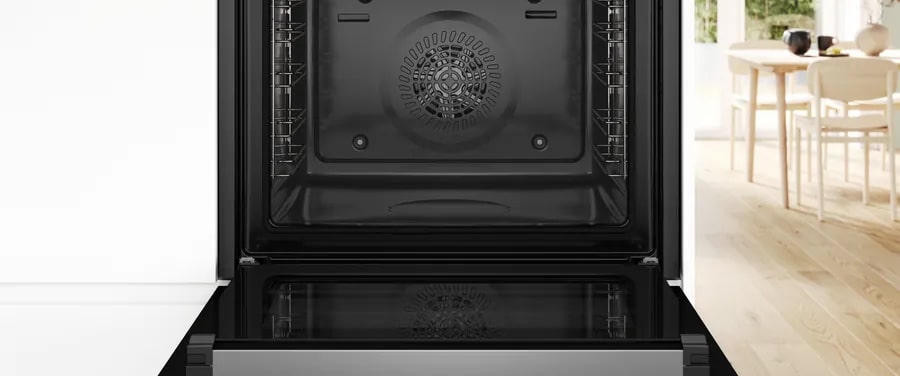 Духовой шкаф Bosch HQA472BB3 в чёрном исполнении подчёркивает современную кухонную эстетику и лаконичность интерьера: строгая лицeвая панель с чёрной фурнитурой формирует аккуратный акцент в составе мебели, оставляя пространство визуально лёгким. Фасад выполнен так, чтобы интеграция в нишу шириной 60 см выглядела цельной — компактные габариты 59,6 x 59,4 x 56,7 см позволяют аккуратно встроить прибор в стандартную конфигурацию, а размеры ниши для встраивания 60–60.4 x 56–56.8 x 55 см делают установку предельно предсказуемой. Внутренний объём 71 л сочетает способность готовить крупные блюда с удобством размещения нескольких уровней одновременно, что особенно важно при выборе техники для семьи или приёма гостей.