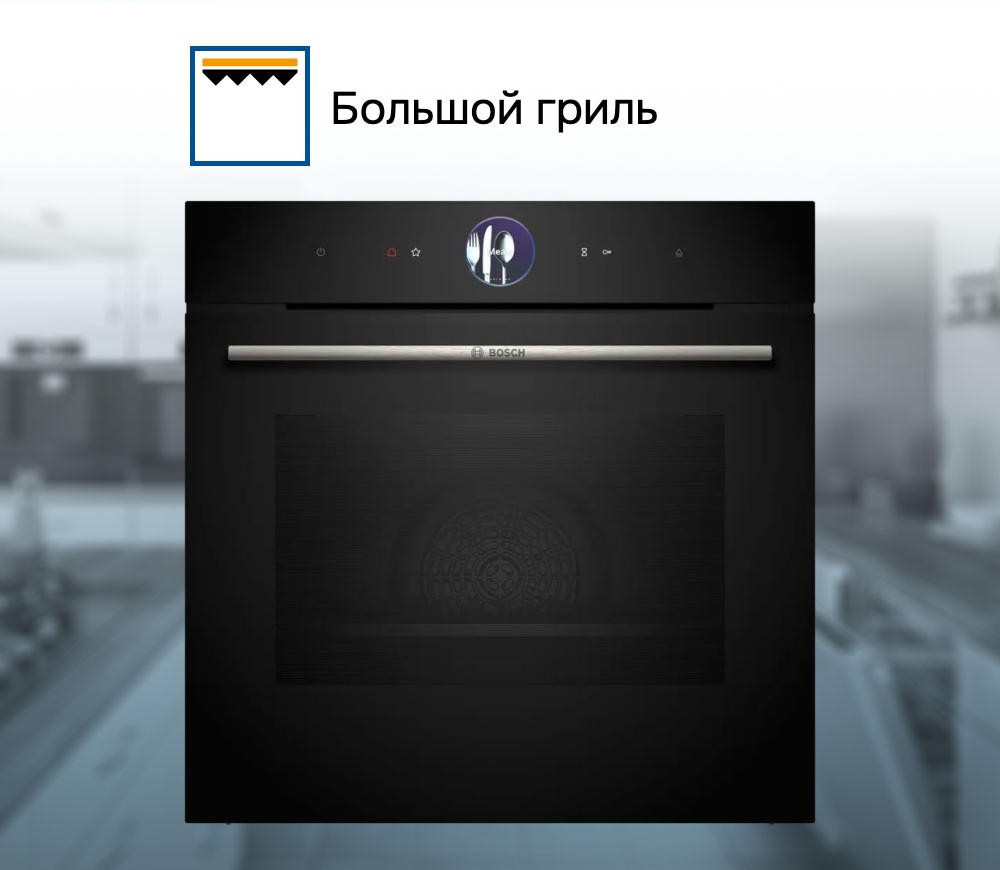 Электрический духовой шкаф Bosch HRG7361B1 из серии Serie 8 - это высокотехнологичное устройство отличается своим стильным дизайном и функциональностью, которые воплощают в себе немецкое качество и инновационность. Внутренний объем шкафа составляет 71 литр, что обеспечивает достаточно места для приготовления больших порций еды. Управление шкафом осуществляется с помощью сенсорных элементов на 2.5-дюймовом цветном TFT-дисплее. Электронные часы и таймер обеспечивают удобство и точность приготовления блюд. Кроме того, шкаф оснащен функцией Home Connect, которая позволяет управлять им через мобильное приложение.