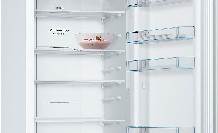 - Система MultiAirflow со встроенным вентилятором улучшает циркуляцию воздуха внутри холодильного отделения, поддерживая оптимальную температуру и влажность на каждой полке.