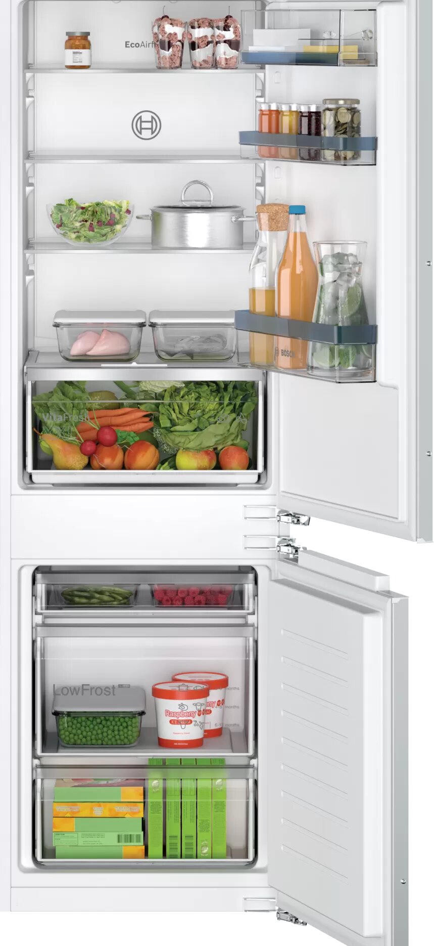 Эта модель холодильника от Bosch представляет собой изысканное сочетание функциональности и стиля. Его светлая расцветка гармонично впишется в любую кухню, создавая ощущение чистоты и простора. Встраиваемая конструкция позволяет устройству стать частью интерьера, не нарушая его целостности. Высота в 177,2 см и компактные размеры делают его идеальным выбором для установки в нишу, при этом обеспечивая достаточное внутреннее пространство для хранения.