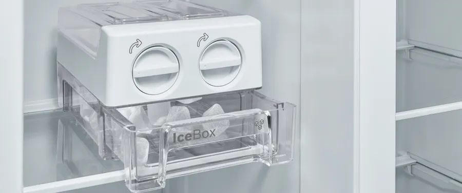 Морозильная камера холодильника оборудована системой NoFrost и функцией суперзамораживания SuperFreezing, что позволяет быстро замораживать продукты, сохраняя их витамины и минералы. Также в морозильной камере есть ручной ледогенератор, что очень удобно для приготовления прохладительных напитков. Этот холодильник отличается высокой энергоэффективностью, его класс энергопотребления – E (старое обозначение A++). Годовой расход электроэнергии составляет всего 363 кВтч, что делает его экономичным вариантом для любого дома.