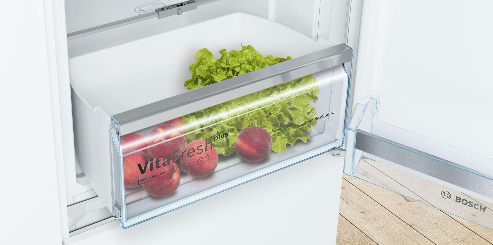 Двухкамерный холодильник Bosch KIN86HD20R — встраиваемая модель с зоной свежести VitaFresh plus. Светодиодная подсветка ярко и равномерно освещает холодильную камеру холодильника. Благодаря системе NoFrost нет необходимости в размораживании прибора. В морозильной камере расположен большой ящик для замороженных продуктов BigBox.
