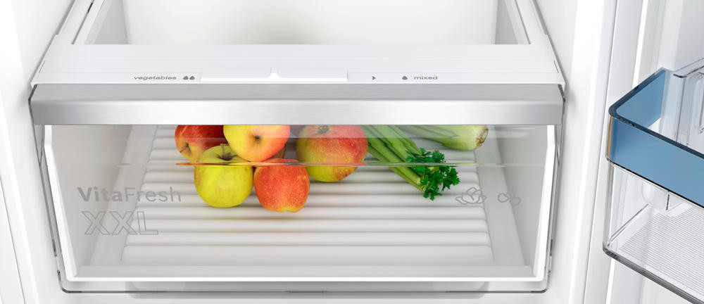 Двухкамерный холодильник Bosch KIV86VS31R — встраиваемая модель VitaFresh XXL с увеличенным объемом холодильной и морозильной камер. Система охлаждения LowFrost уменьшает обледенение морозильной камеры, излишняя влага отводится наружу через специальное отверстие. Функция SuperFreezing обеспечивает быстрое замораживание новых продуктов, предотвращая размораживание содержимого морозилки.