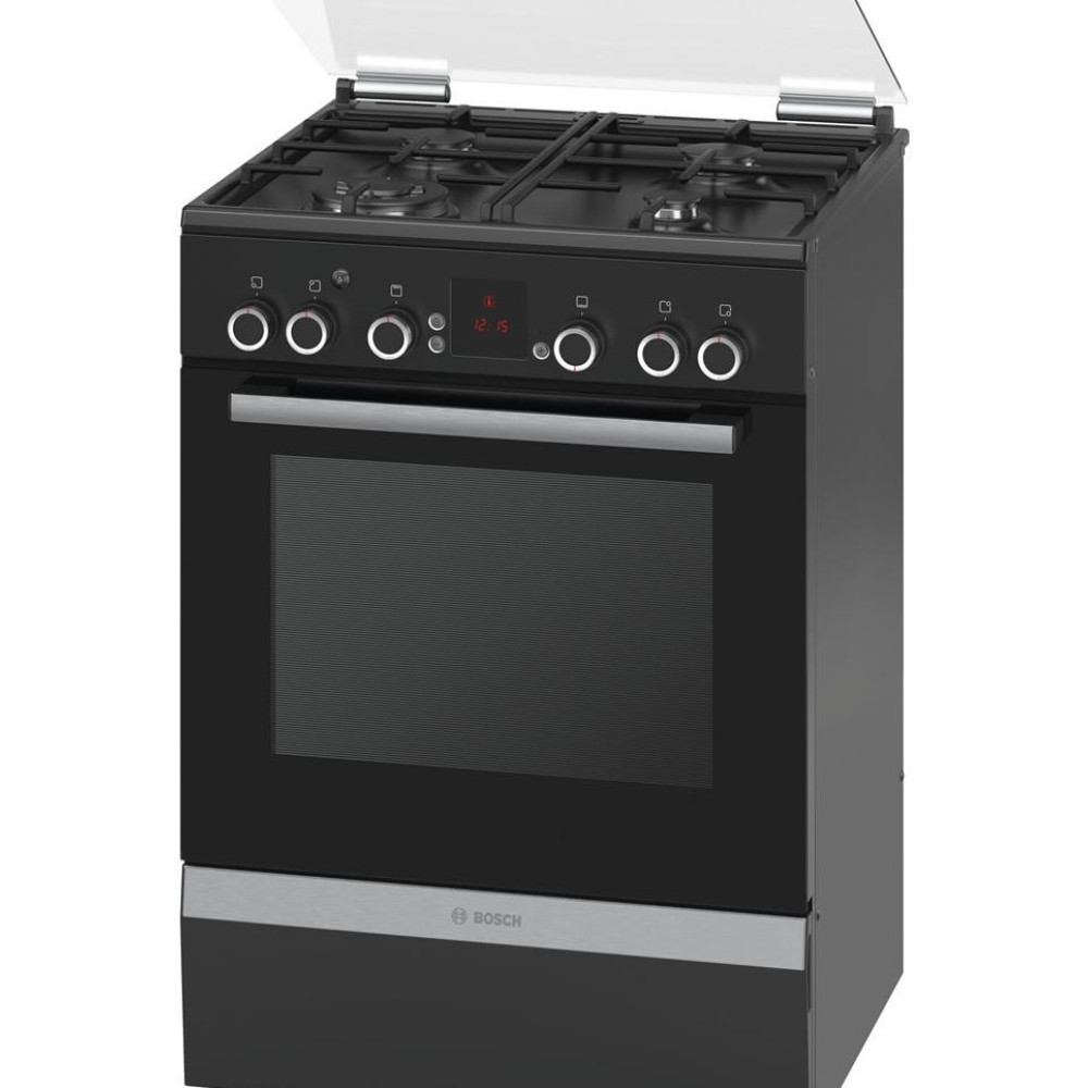 Газовая плита в черном исполнении HGA34W365R оснащена крышкой. Стекло защищает стену от попадания жира и других загрязнений от приготавливаемой пищи. Держатели для посуды выполнены из долговечного материала — чугуна. Шероховатая поверхность решеток защищает посуду от соскальзывания. Вместительная духовка позволяет готовить на нескольких уровнях одновременно. Электромеханический вертел расширяет возможности модели. Полностью стеклянная внутренняя поверхность двери обеспечивает легкую чистку.
