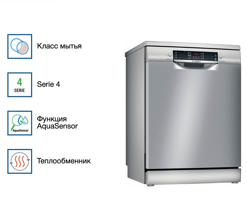 Посудомоечная машина Bosch SMS46MI20M выполнена в цвете «нержавеющая сталь» и вмещает в себя до 14 комплектов посуды. Датчик AquaSensor определяет уровень мутности воды и в зависимости от этого регулирует ее количество, что способствует более экономному расходу ресурсов. Покрытие против отпечатков пальцев поможет без труда содержать прибор в чистоте.