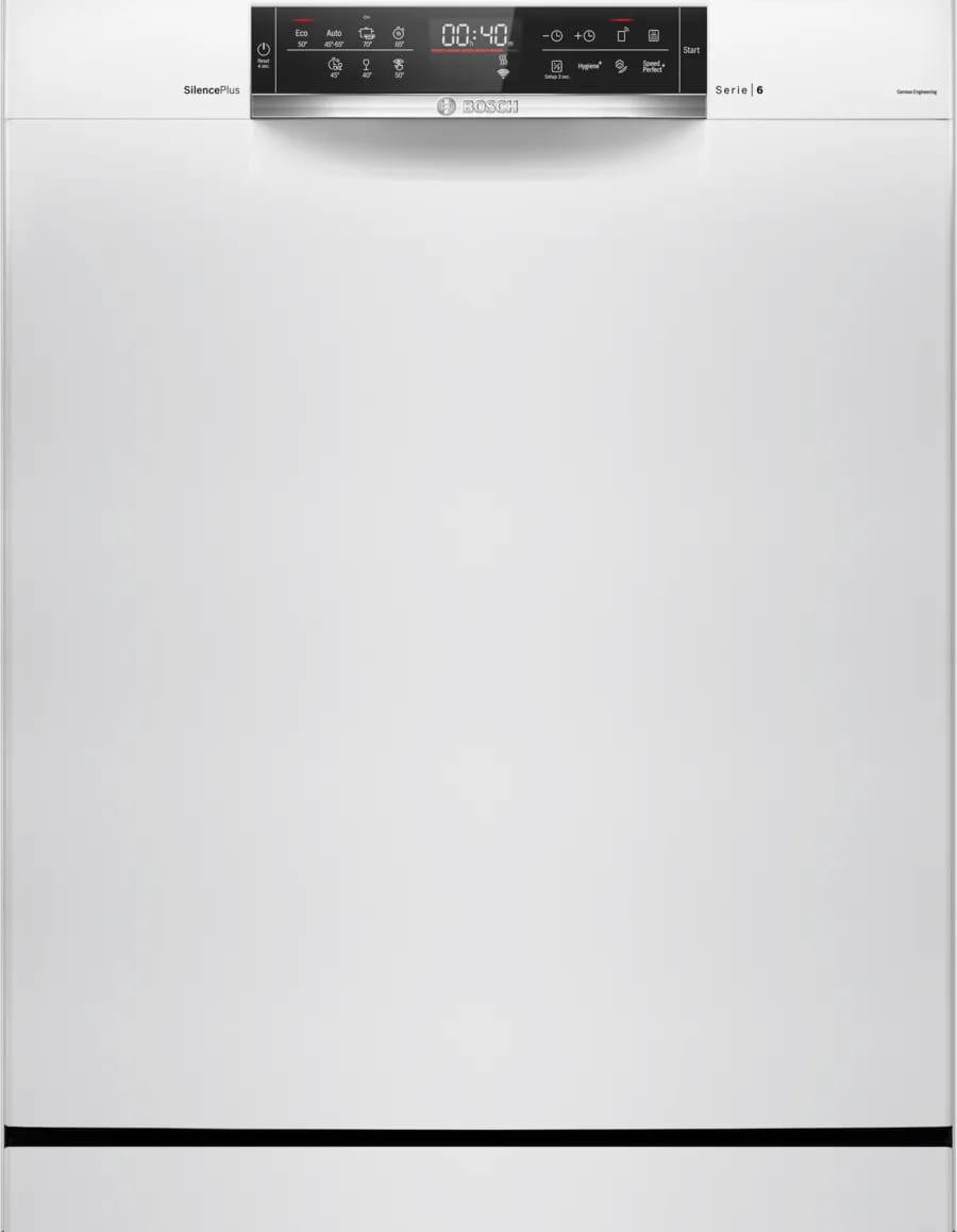 Посудомоечная машина Bosch SMS6EMW65Q - это высококачественная, полноразмерная посудомоечная машина, которая сочетает в себе эстетику и функциональность. С ее белым цветом и черной панелью управления, эта машина не только выглядит стильно, но и обеспечивает превосходную производительность. Она оснащена шестью стандартными программами и четырьмя температурными режимами, что позволяет выбирать наиболее подходящий режим для различных типов посуды и степени загрязнения. Благодаря функции автоматического определения загрузки, машина сама регулирует количество воды и энергии, необходимое для эффективной и экономичной работы.