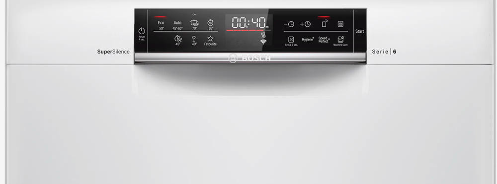 Посудомоечная машина Bosch SMS6ZCW37Q С технологией Home Connect можно настраивать и запускать мойку прямо со смартфона. Отсрочка старта позволит запустить работу в любое удобное вам время. Технология Hygiene Dry, в основе которой лежит использование теплообменника, позволяет достигать высокого класса сушки при закрытой двери, а также мыть тонкое стекло вместе с остальной посудой за счет отсутствия перепадов температур.