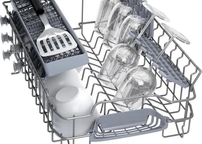 Посудомоечная машина Bosch SPS2IKW10E представляет собой ультрасовременное устройство, отличающееся высокой функциональностью и стильным дизайном. Эта отдельностоящая модель выполнена в классическом белом цвете, который легко вписывается в любой интерьер. Корпус изготовлен из качественных материалов, что обеспечивает долгий срок службы устройства. Особое внимание заслуживает инновационная система сушки посуды. Тип сушки в этой модели — конденсационный, что позволяет достигать высоких результатов с минимальным энергопотреблением. Это делает использование посудомоечной машины не только удобным, но и экономически выгодным. Устройство оснащено инверторным двигателем EcoSilence Drive, который обеспечивает тихую и эффективную работу. Это позволяет установить посудомоечную машину даже в небольших помещениях без боязни зашумления пространства. Система ActiveWater, встроенная в машину, гарантирует оптимальное использование воды. Эта технология позволяет сэкономить воду и электроэнергию, при этом обеспечивая идеальное мытье посуды. Посудомоечная машина Bosch SPS2IKW10E оснащена пятью стандартными программами мытья и четырьмя температурными режимами. Это позволяет выбрать наиболее подходящий режим в зависимости от степени загрязнения посуды и ее типа. Удобство использования устройства обеспечивает наличие дисплея и кнопочного управления. Все необходимые параметры и режимы легко и быстро устанавливаются с помощью интуитивно понятного интерфейса. Устройство оснащено системой AquaStop, которая предотвращает протечки и защищает вашу кухню от нежелательных последствий. Также есть блокировка от детей, что делает использование машины безопасным даже в присутствии маленьких детей.