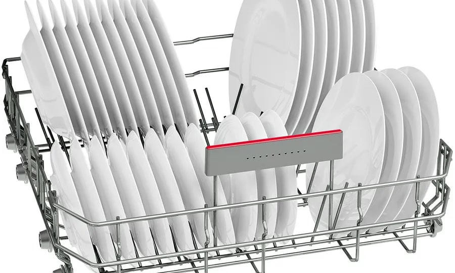 Встраиваемая посудомоечная машина Bosch SBH4HVX00E сочетает аккуратный внешний вид и продуманные инженерные решения, позволяющие превращать ежедневный ритуал в тихую и экономичную процедуру. Стальная панель управления из нержавеющей стали визуально подчёркивает статусность техники и обеспечивает устойчивость к износу, а закрытая панель сохраняет цельность кухонного фасада, делая прибор гармоничным элементом интерьера без лишних деталей на виду. Компактные пропорции при полноразмерном объёме загрузки позволяют разместить до 14 комплектов одновременно, что особенно удобно для больших семей или тех, кто предпочитает реже запускать цикл. Внутренняя компоновка выполнена с акцентом на гибкость: три корзины с регулируемой по высоте верхней секцией Rackmatic-3 и двумя полочками для чашек дают возможность быстро адаптировать пространство под посуду разного формата, а складные направляющие для тарелок в верхнем и нижнем отделениях упрощают укладку кастрюль или высоких бокалов.