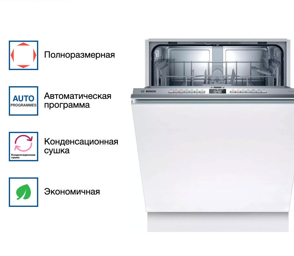 Встраиваемая посудомоечная машина Bosch SMV4ITX11E – это современное решение для бытовых потребностей, которое обеспечивает удобство и эффективность. Машина выполнена в полноразмерном формате и оснащена конденсационной системой сушки, что обеспечивает отличные результаты мытья и сушки. Модель отличается своей вместительностью, способной разместить до 12 комплектов посуды.