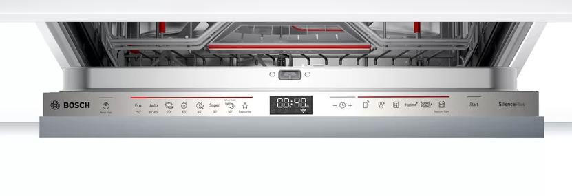 Встраиваемая посудомоечная машина Bosch SMV6HCX3FR имеет гибкую загрузку и интеллектуальное дистанционное управление через приложение Home Connect. С технологией Home Connect вы можете настраивать и запускать мойку прямо со смартфона. Активируйте функцию Easy Start для автоматического выбора оптимальной программы в зависимости от типа и количества посуды, а также степени ее загрязнения. Функция «Счетчик таблеток» присылает в приложении push-уведомления, когда у вас осталось последние пять таблеток моющего средства.