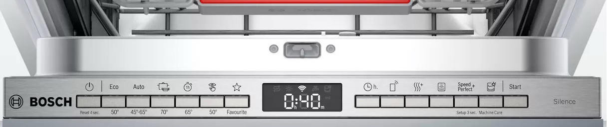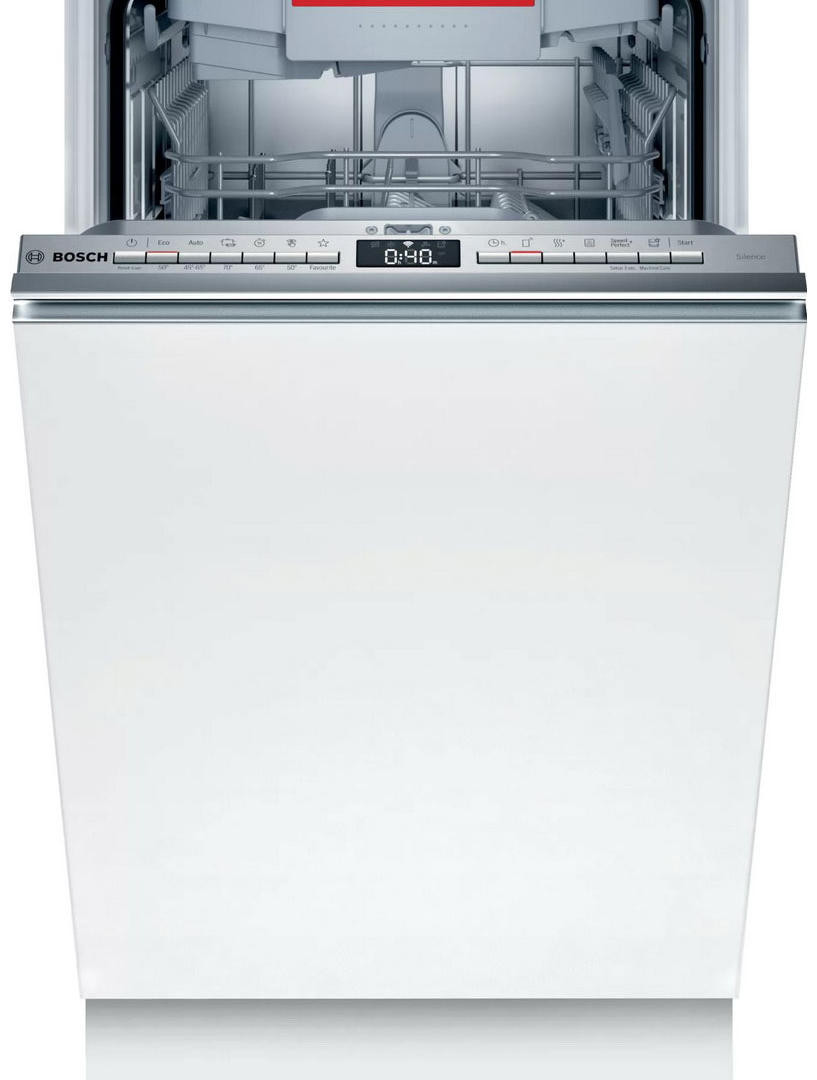 Посудомоечная машина BOSCH SPV4XMX20E — это встраиваемая модель шириной 45 см. Система защиты AquaStop сработает в случае неожиданной протечки и автоматически перекроет подачу воды. InfoLight или «Луч на полу» — это технология, которая проецирует на пол световое пятно, чтобы вы всегда были в курсе, на какой стадии работы находится прибор. Мотор EcoSilenceDrive, благодаря своей конструктивной особенности в виде отсутствия щёток, потребляет меньше электроэнергии, более долговечен и при этом издаёт меньше шума.